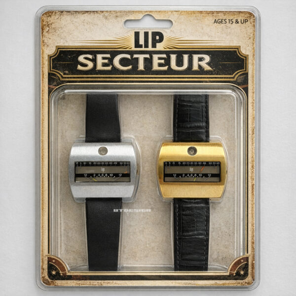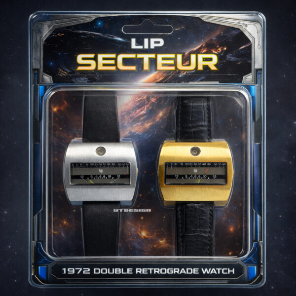 1972年発売にフランスのLIPから発売された、針の円弧運動で時刻表示をするレトログラードの自動巻きの時計です。以前にこれのゴールドモデルをこちらでご紹介しましたが、今回シルバーモデルを入手しましたのでアップします。
