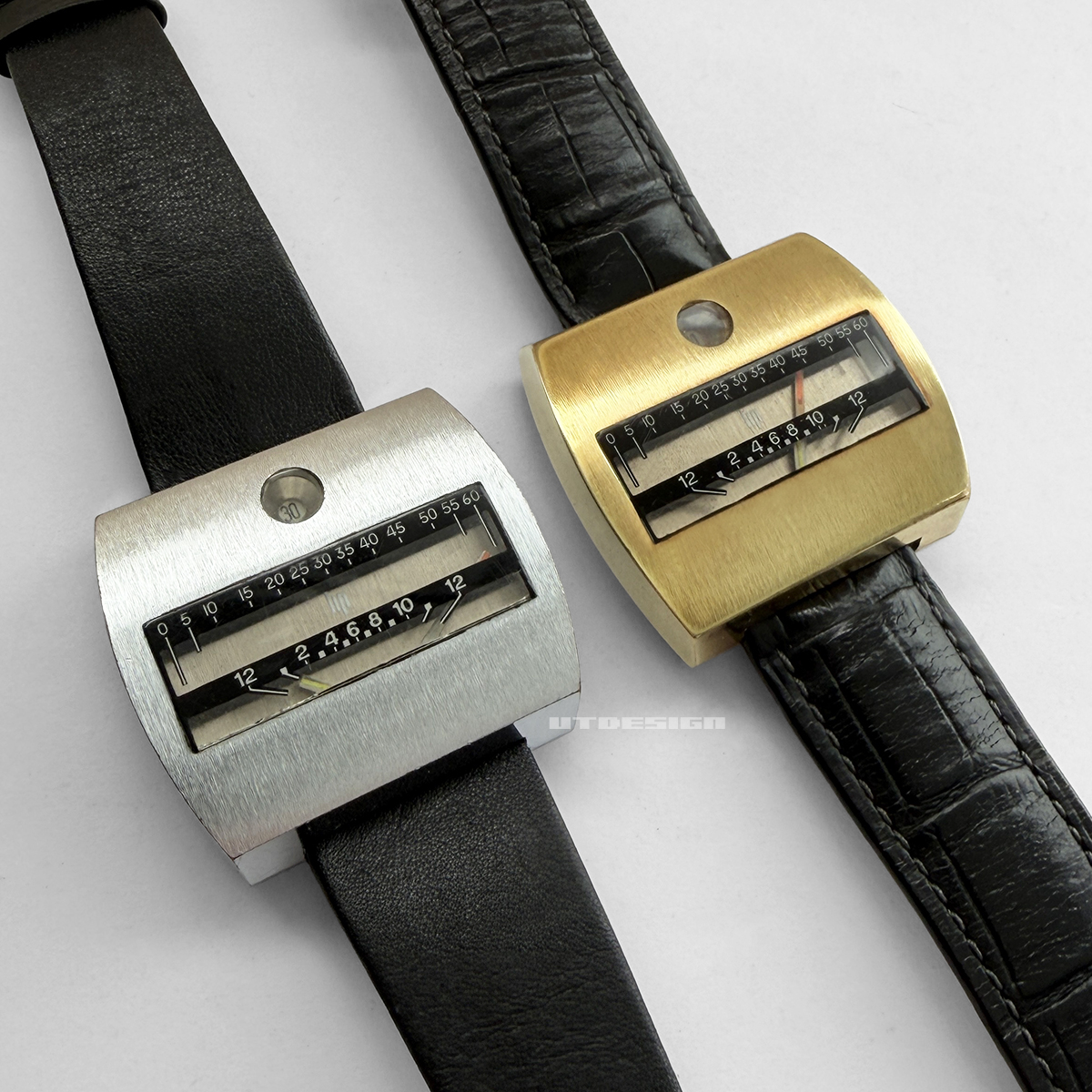 窓際で。どちらもいわゆる腕時計デザインの文脈から逸脱したカッコ良さです。