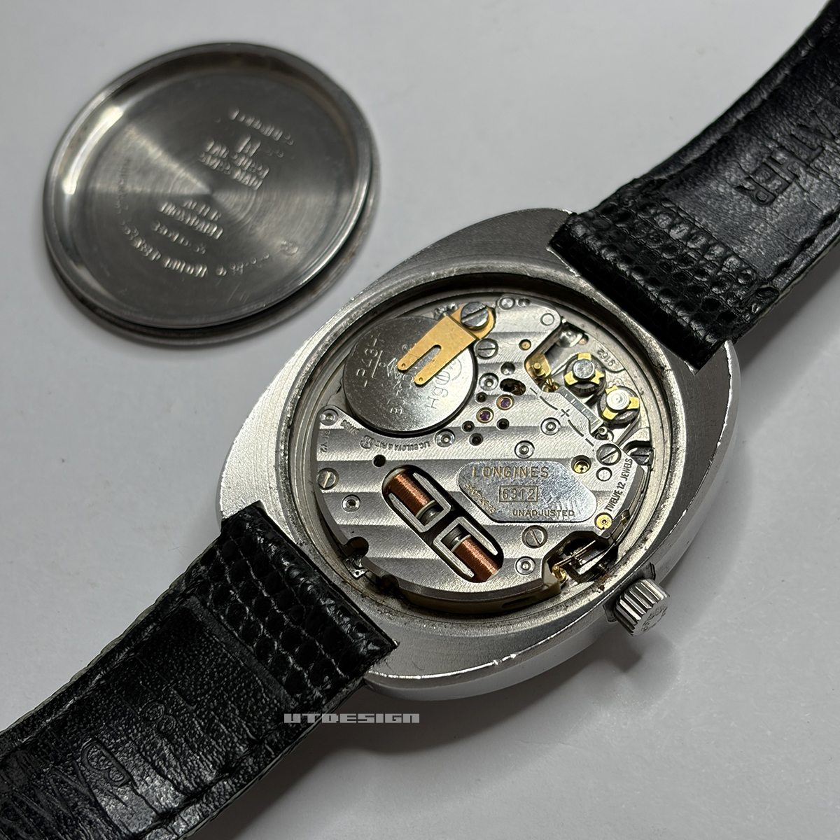 裏蓋を開けた状態。ムーブはオメガのフジツボ音叉(こちらでご紹介)と同じESA9162をベースとしたCal.6312です。