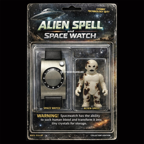 2026.2.21.追記・・・AIで下の様な画像を作ってみましたので、追記します。宇宙時計の画像とスペル星人のフィギュアの画像とテキスト入力だけでこんな画像生成してくれます。